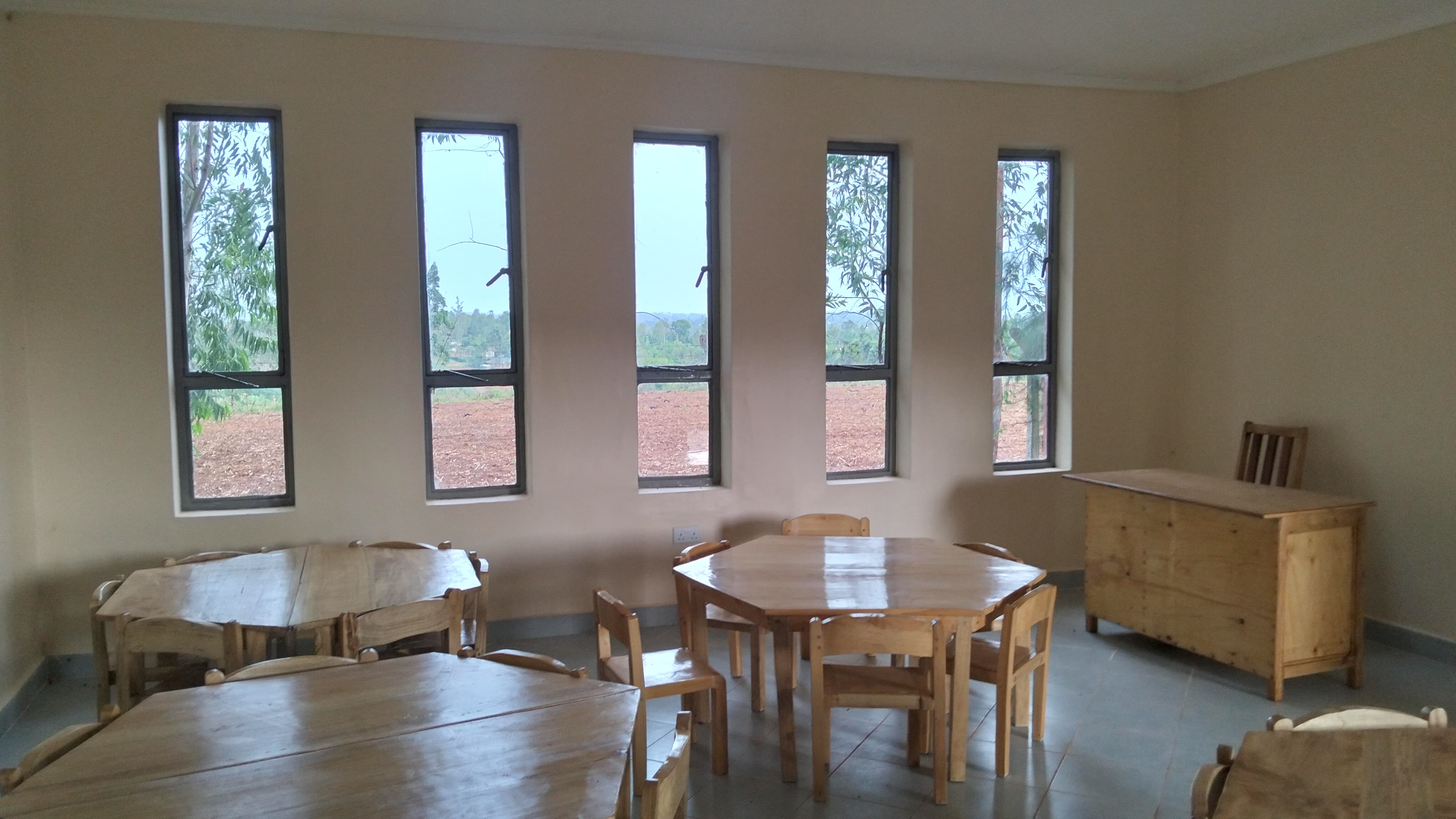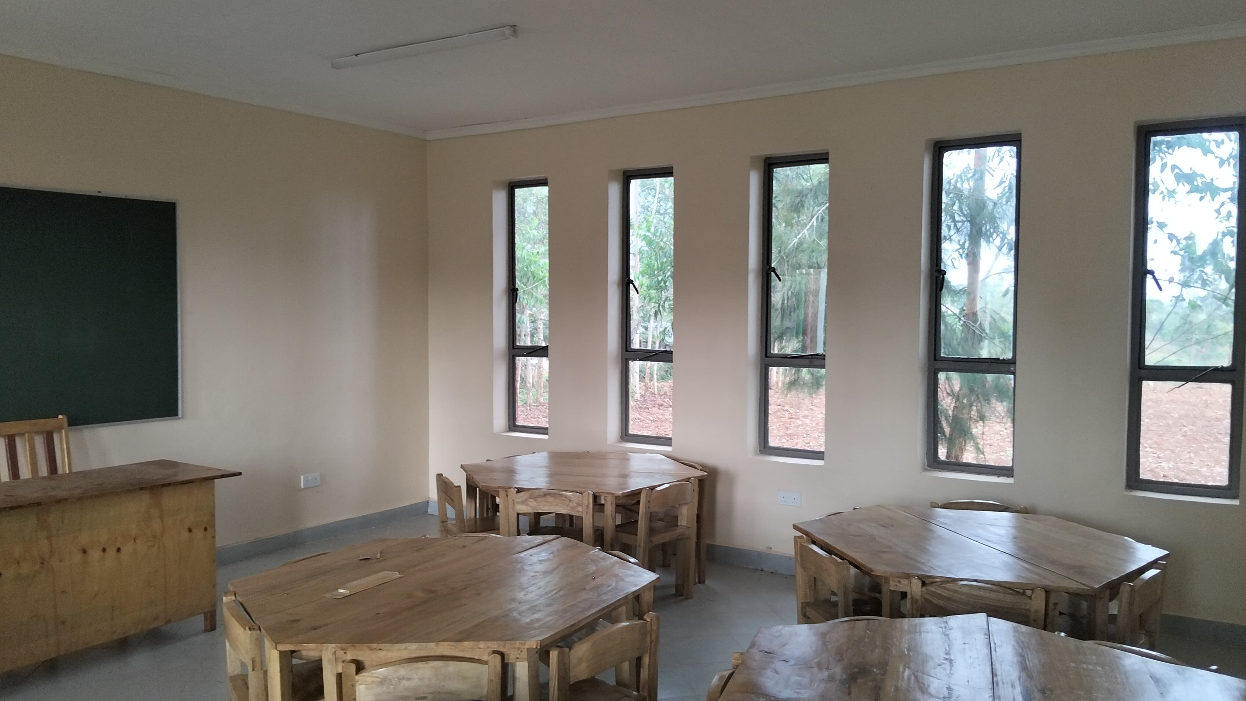 Das Kindergartengebäude ist fertig und die Einrichtung der beiden Klassenräume und des Büros ist komplett.